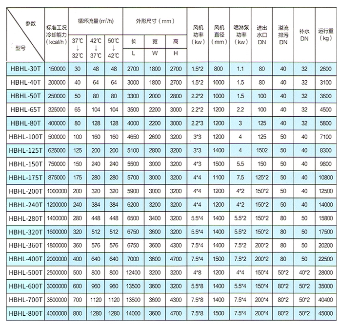 設計工況:濕球溫度:28°C,干球溫度:31.5°,大氣壓力:9.94X10PA